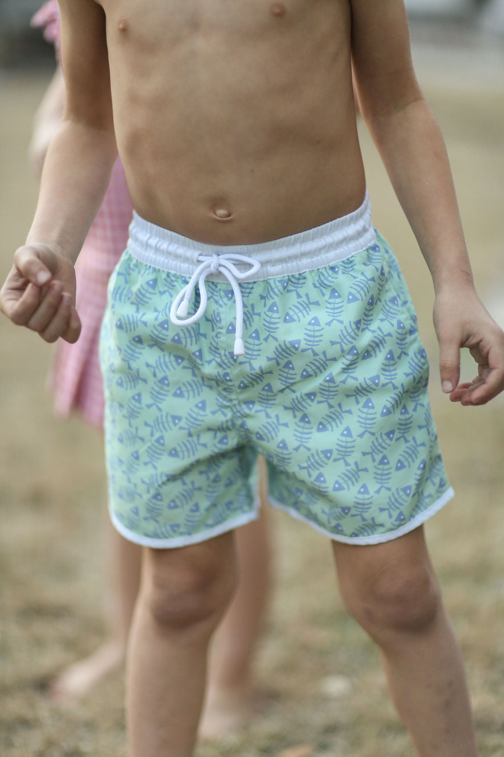 It's time to jump in! He will make a splash in our boy's Swim Short! Made of our super soft swim material and netting on the inside. Features hand-designed prints, pockets and a comfy draw string waist.
